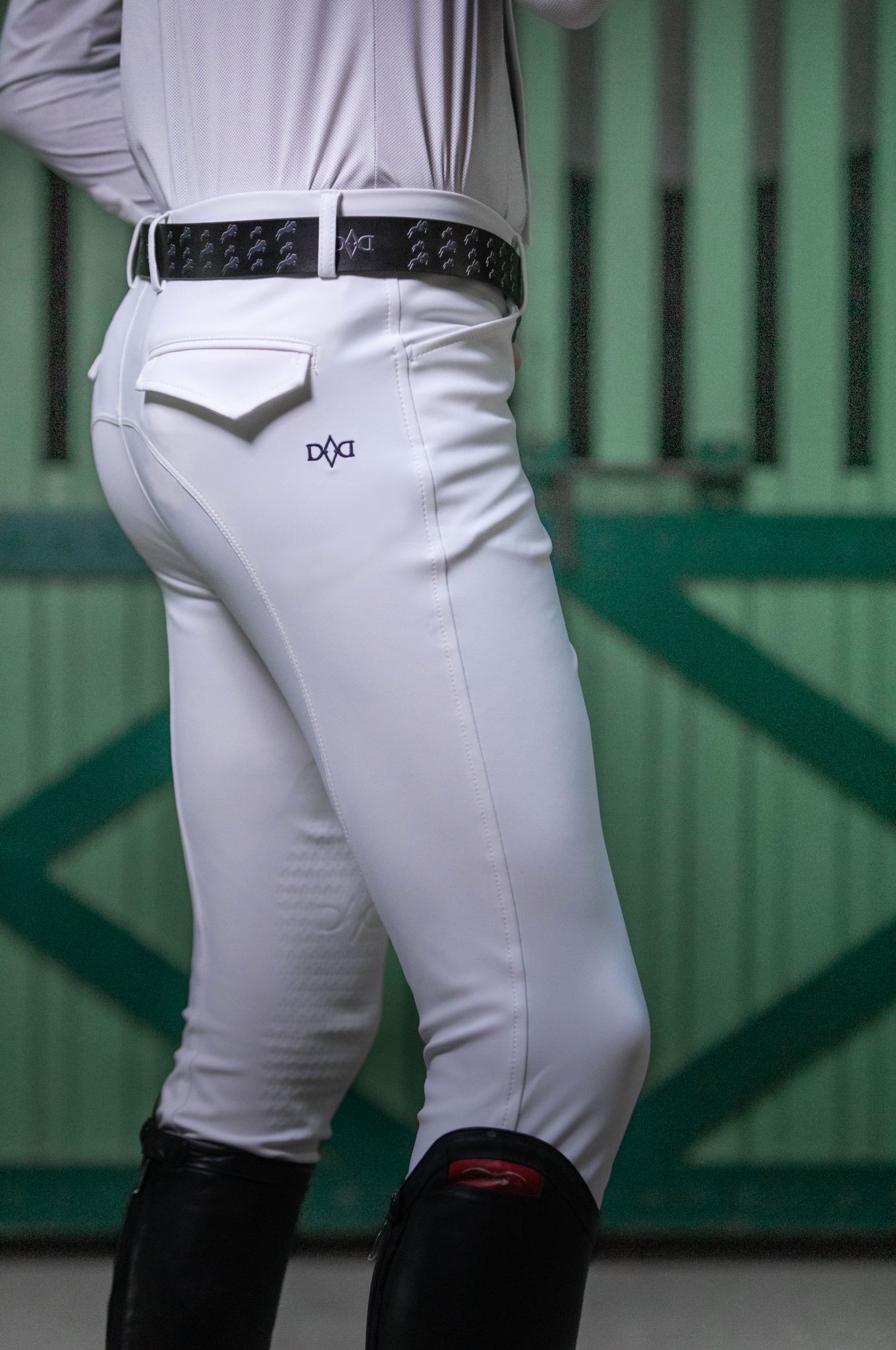 Pantaloni da cavallo in tessuto bistretch con grip in plastisol - 2 tasche frontali, 2 tasche posteriori con pattina e bottone, elastico in cintura con grip 'ferma camicia', ricamo logo sul dietro, rimesso multistretch al fondo.