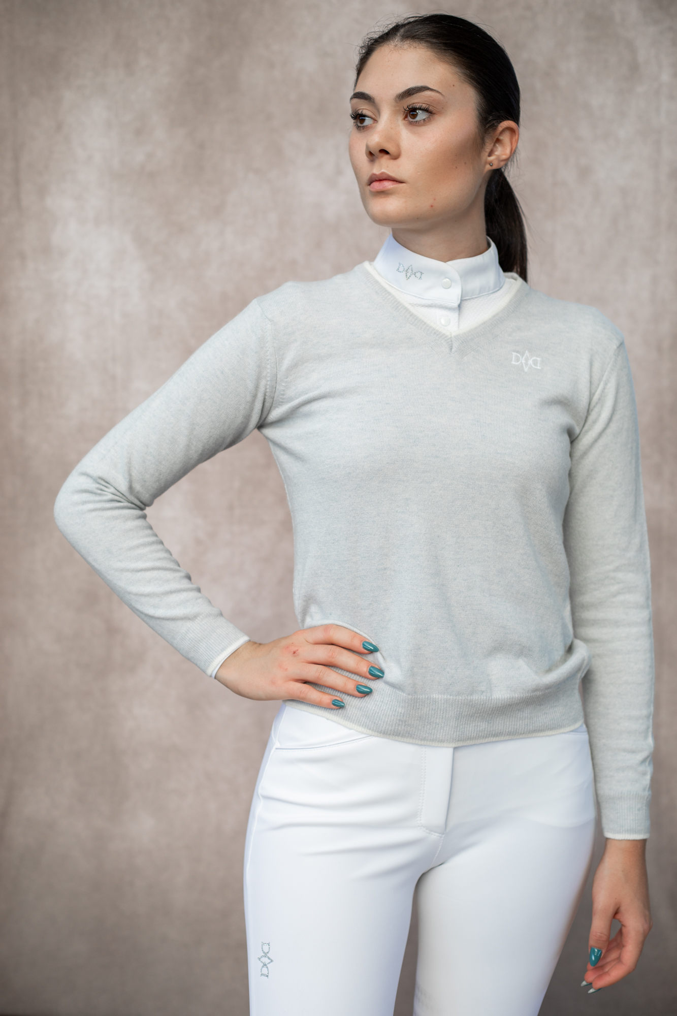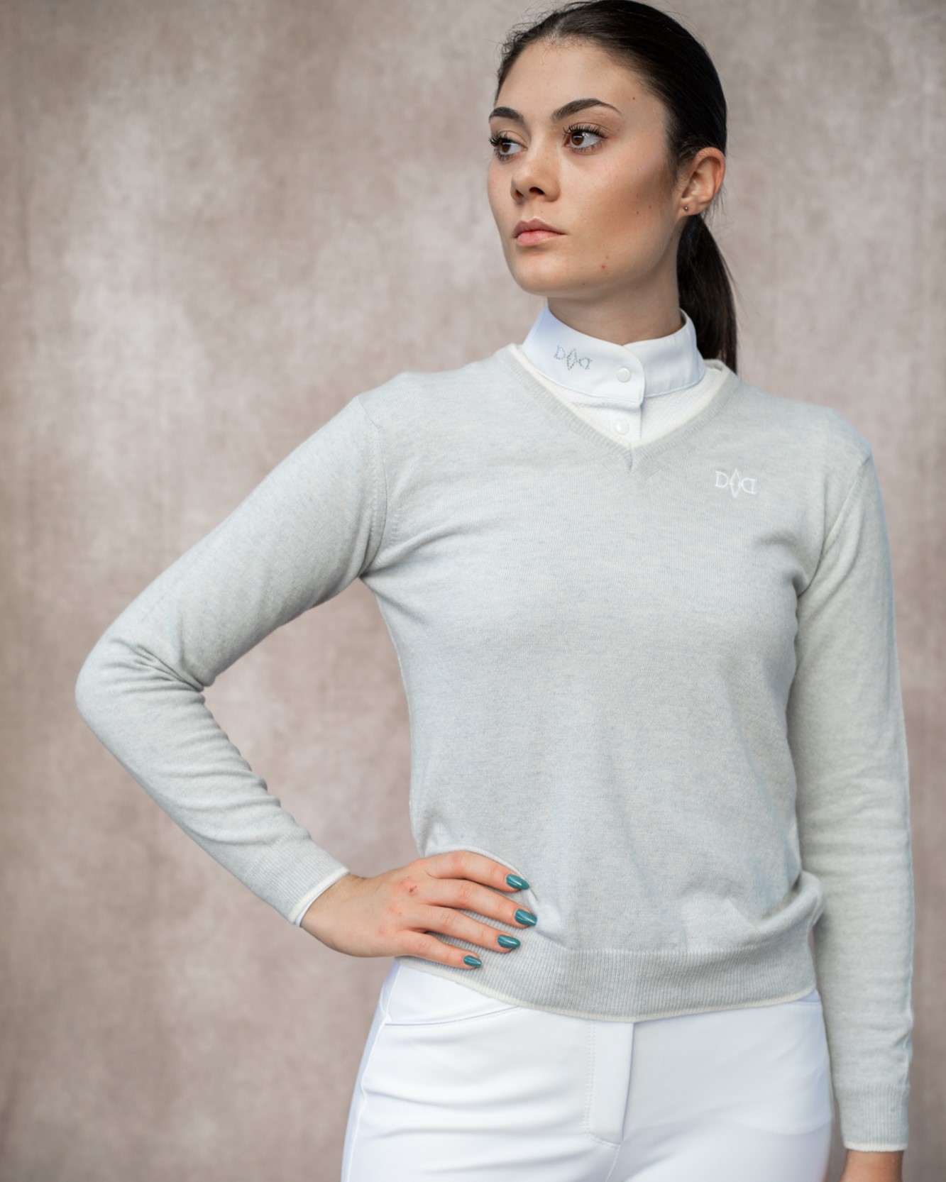 Maglioncino in misto cashmere - pratico scollo a V - dettaglio logo VDV sul petto