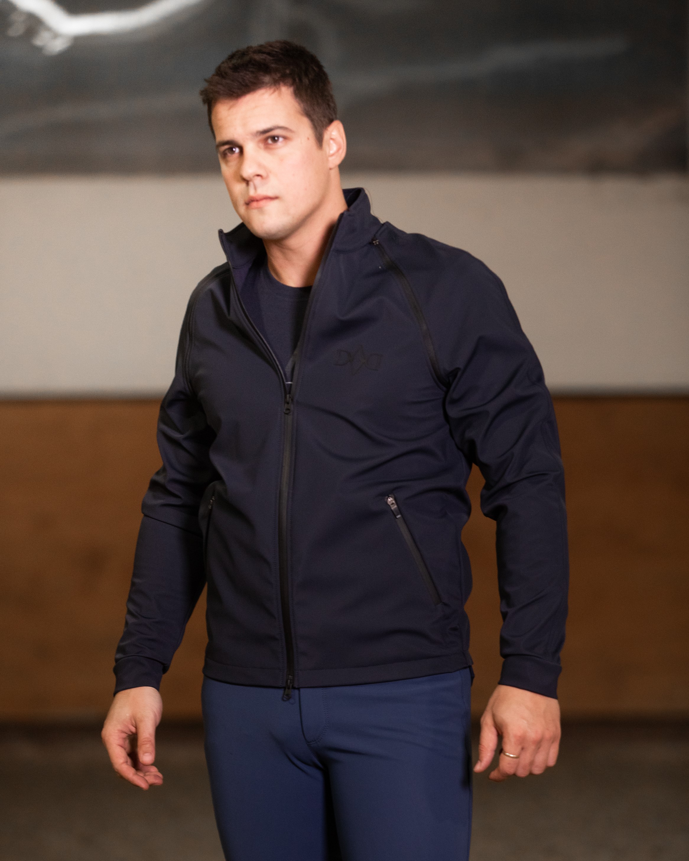 Tessuto tecnico elasticizzato, esterno antigoccia e antivento, interno garzato.