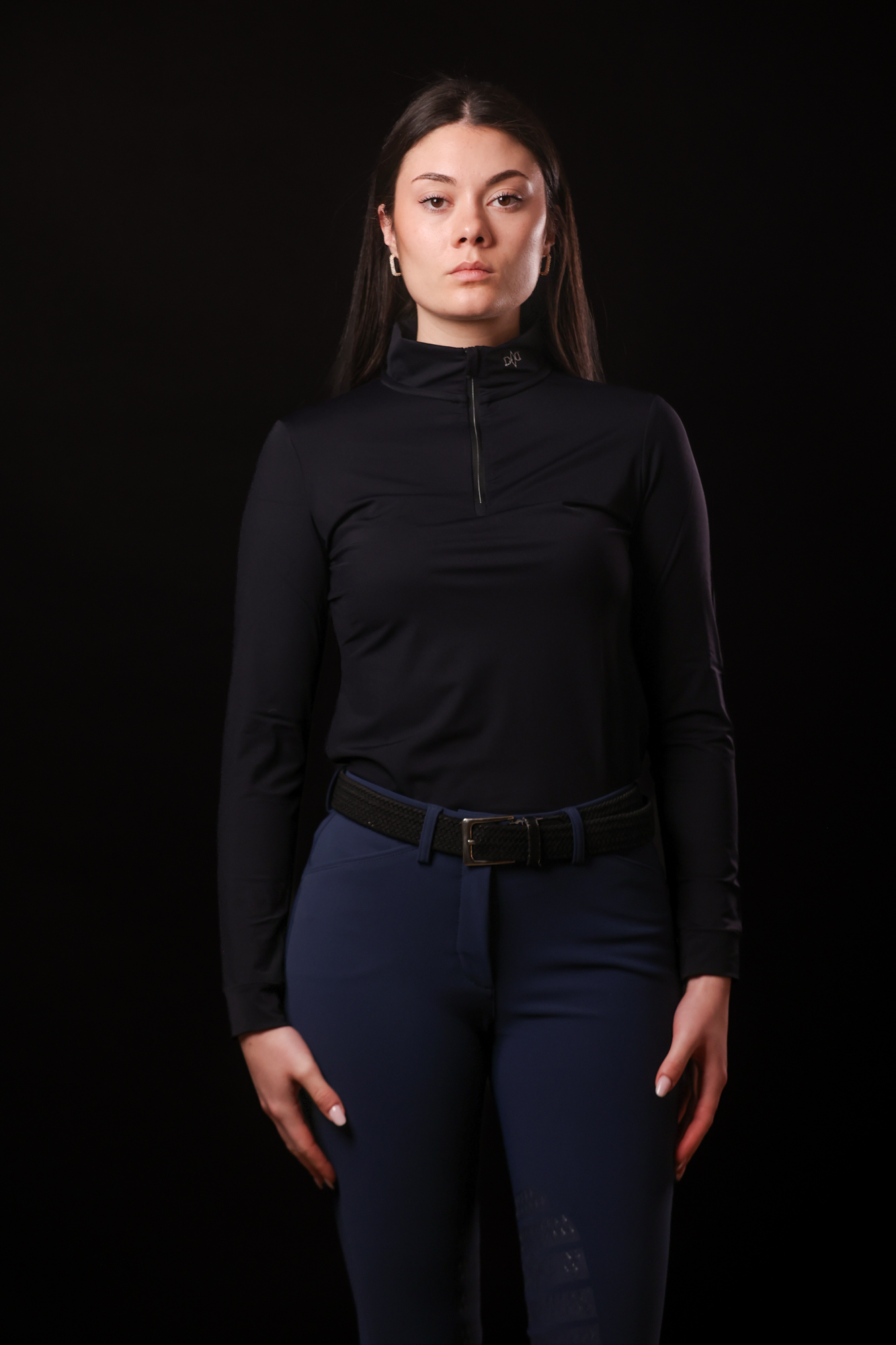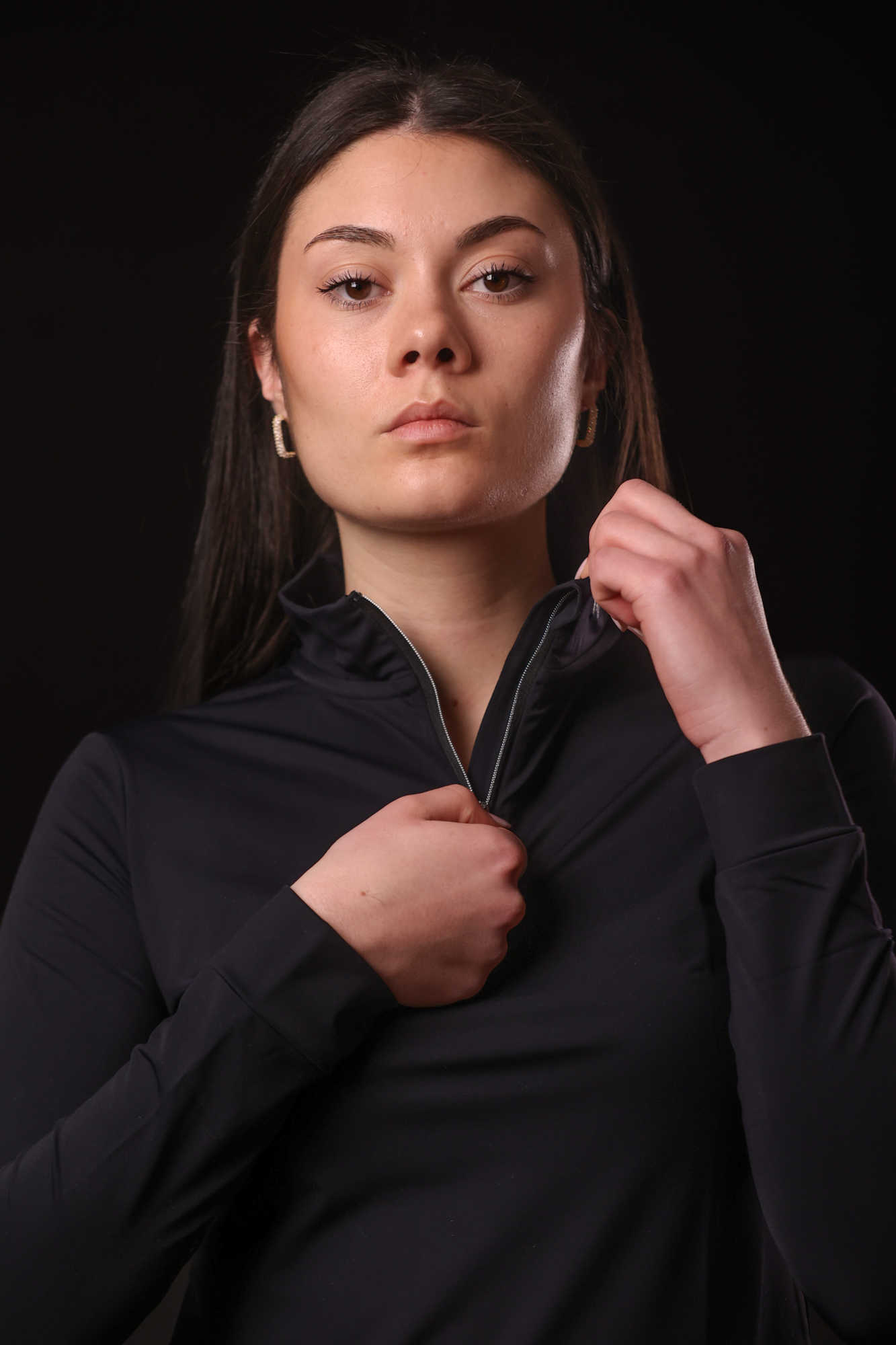 Maglietta performante tech a manica lunga e collo alto con zip.