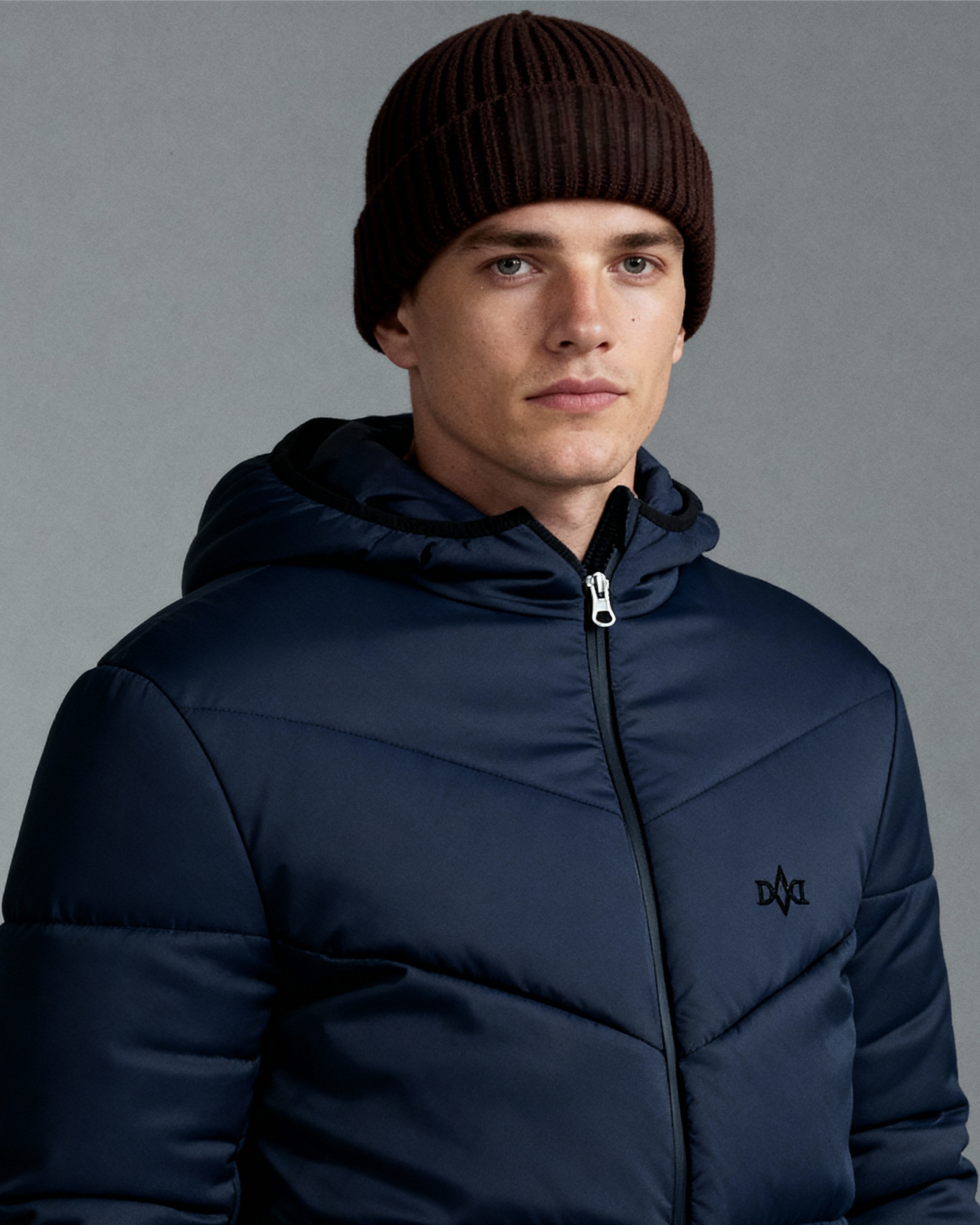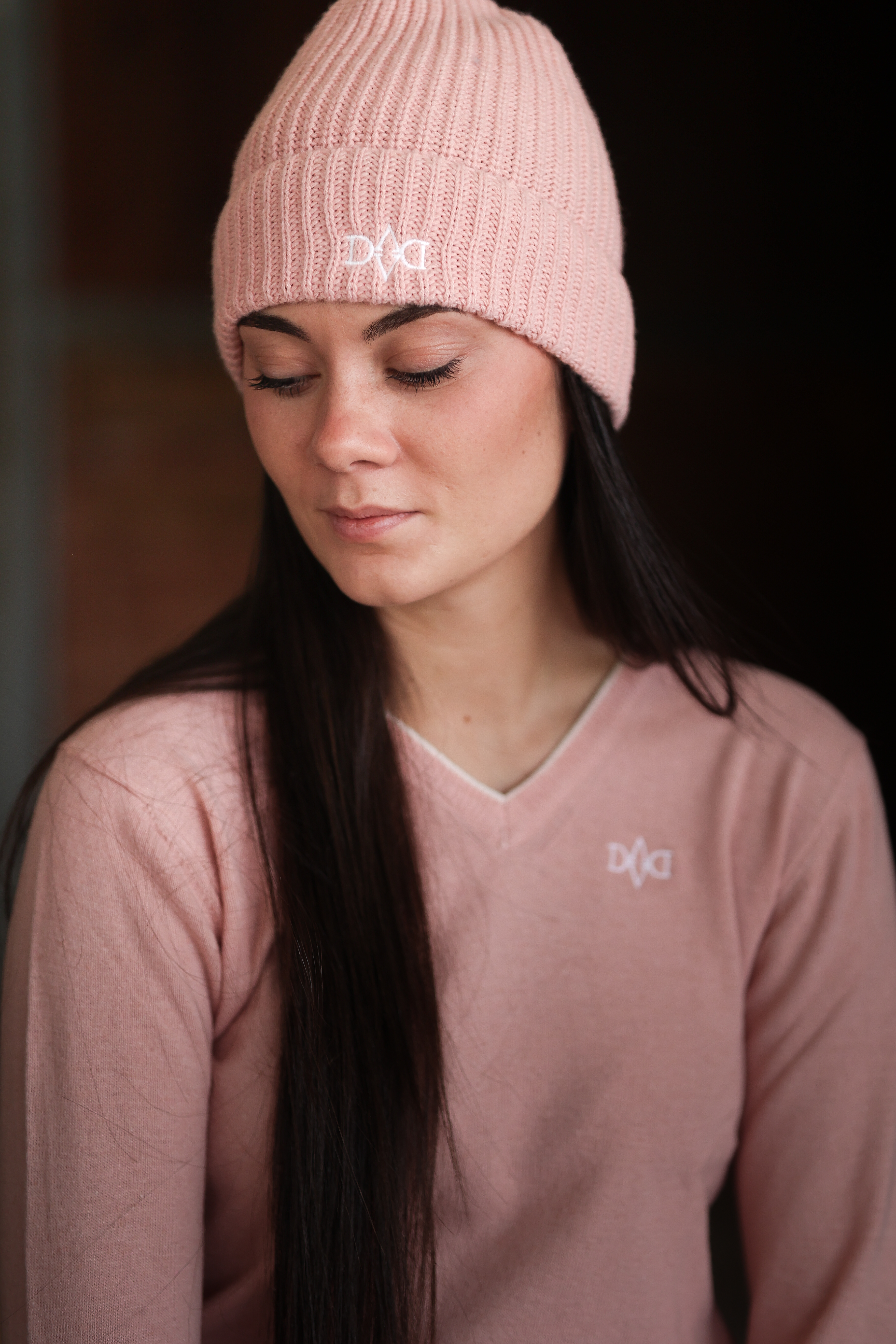 Berretto invernale a coste in lana misto cashmere decorato con piccolo ricamo logo.