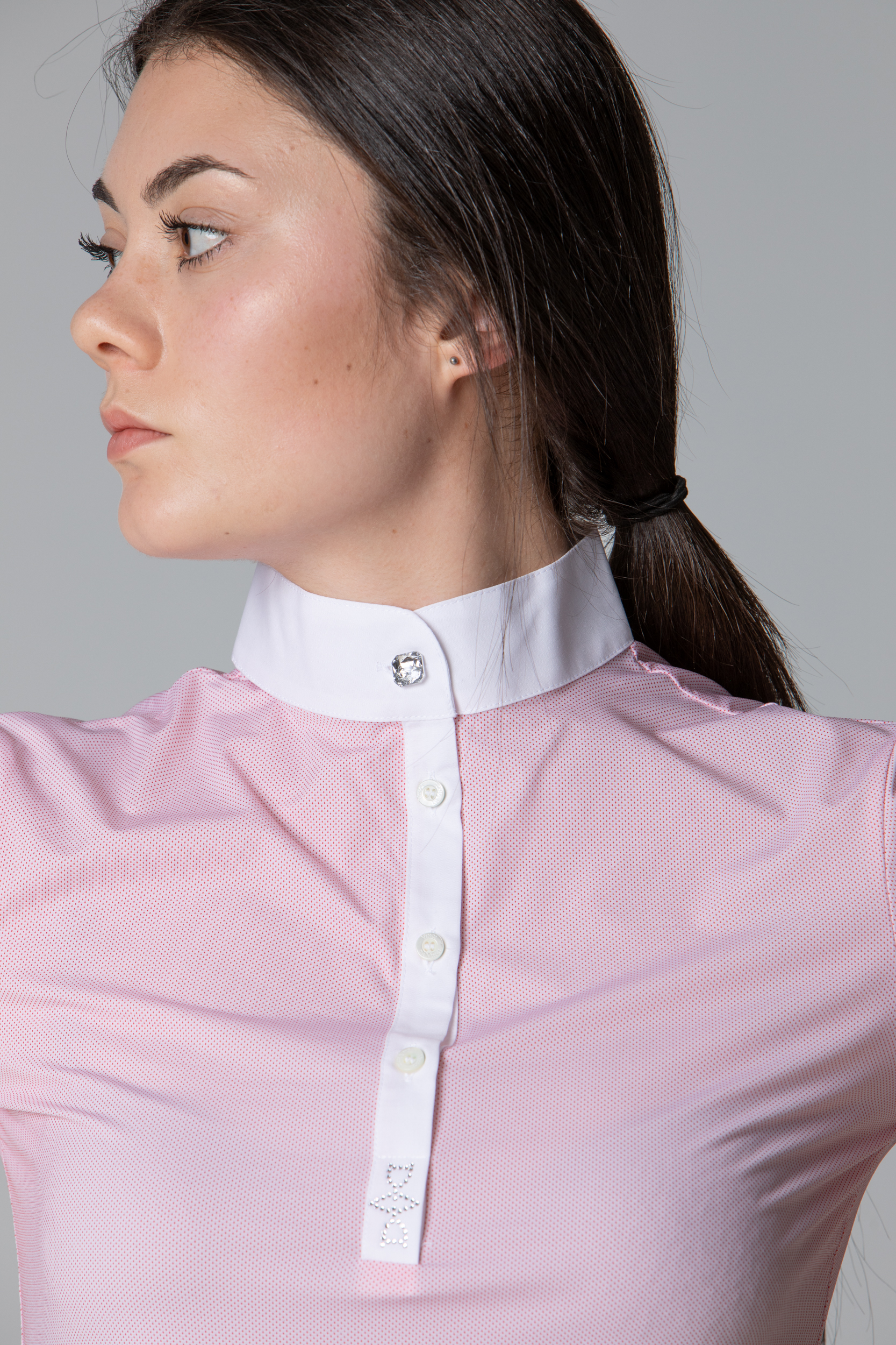 L’articolo da equitazione Venere è impreziosito sulla parte frontale da logo in strass Vinci da Vinci, completato da bottoncini in madreperla e un bottone gioiello.